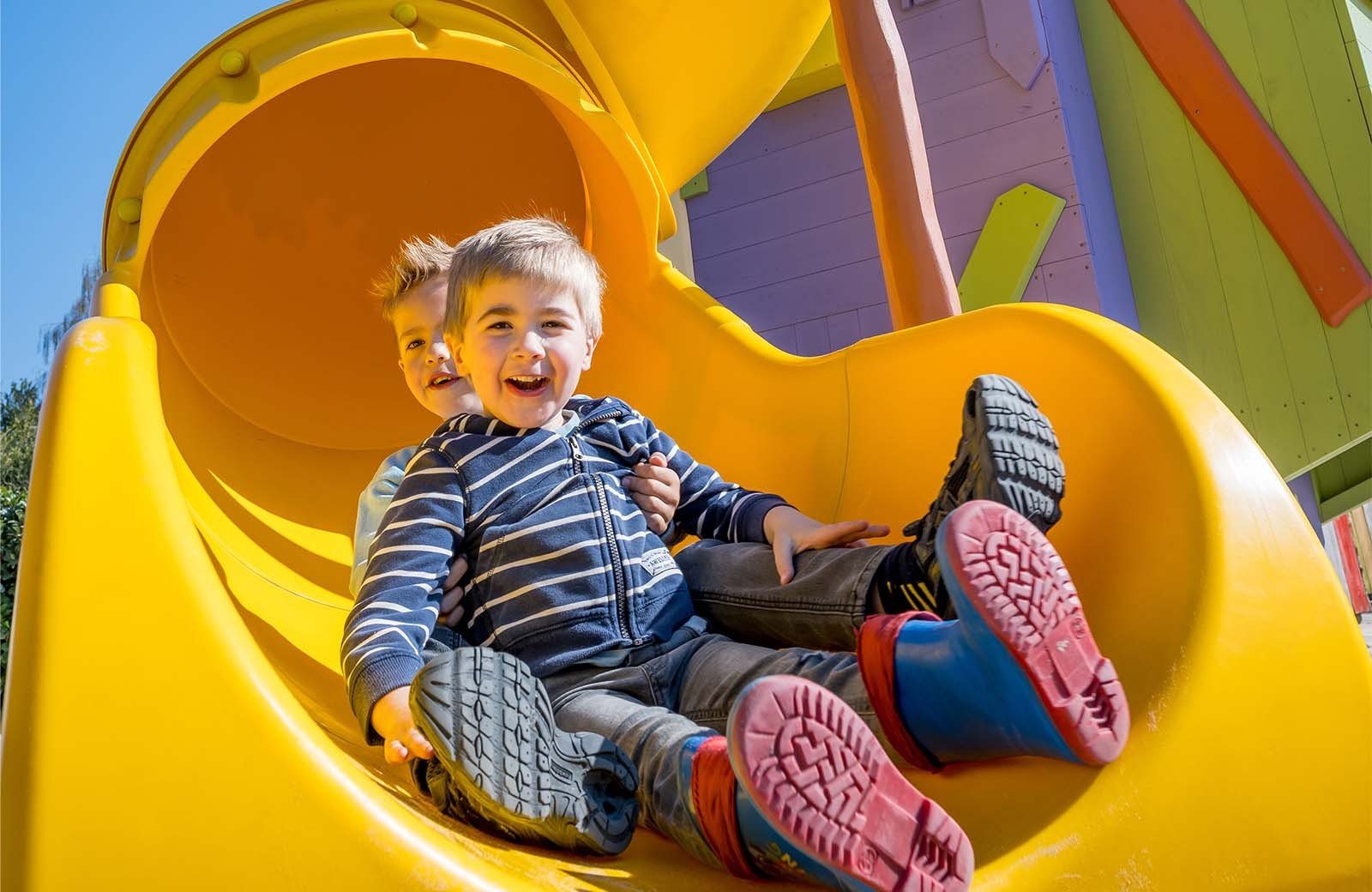 In onze indoor speeltuin kun je eindeloos spelen, of de zon nu schijnt of het regent. Klim en klauter door de kleurrijke speeltoestellen, roetsj van de glijbanen en ontdek alle vrolijke hoekjes van het Speelfort van Woezel & Pip.